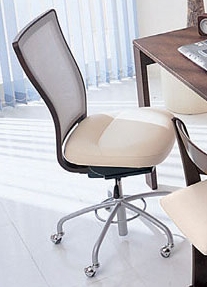 デスクチェアは、木部塗装色と合成皮革の表張材が選択できる。